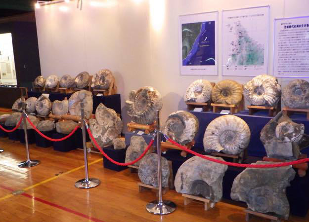 大型アンモナイトのコーナーは、ロープで結界をしております。結界の中に入ってアンモナイトにお触れにならないよう、ご協力お願いします。